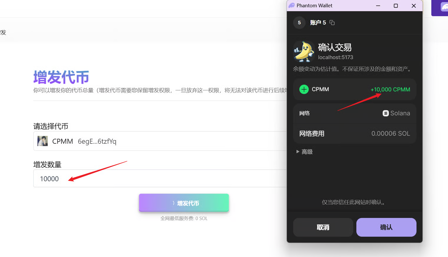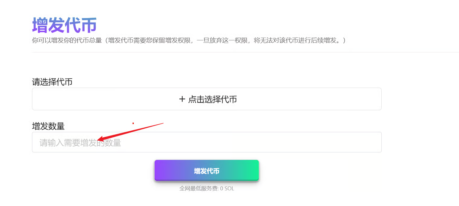 Solana链发币Solana增发代币教程On this pageSolana增发代币教程 增发代币视频教程 1、选择代币 点击选择代币,选择需要操作的代币 2、输入增发数量 3、确认增发代币 点击增发代币按钮,弹出钱包,点击确认 其他问题 任何问题,都可以进入Telegram电报群找志愿者解答: https://t.me/BananaTools