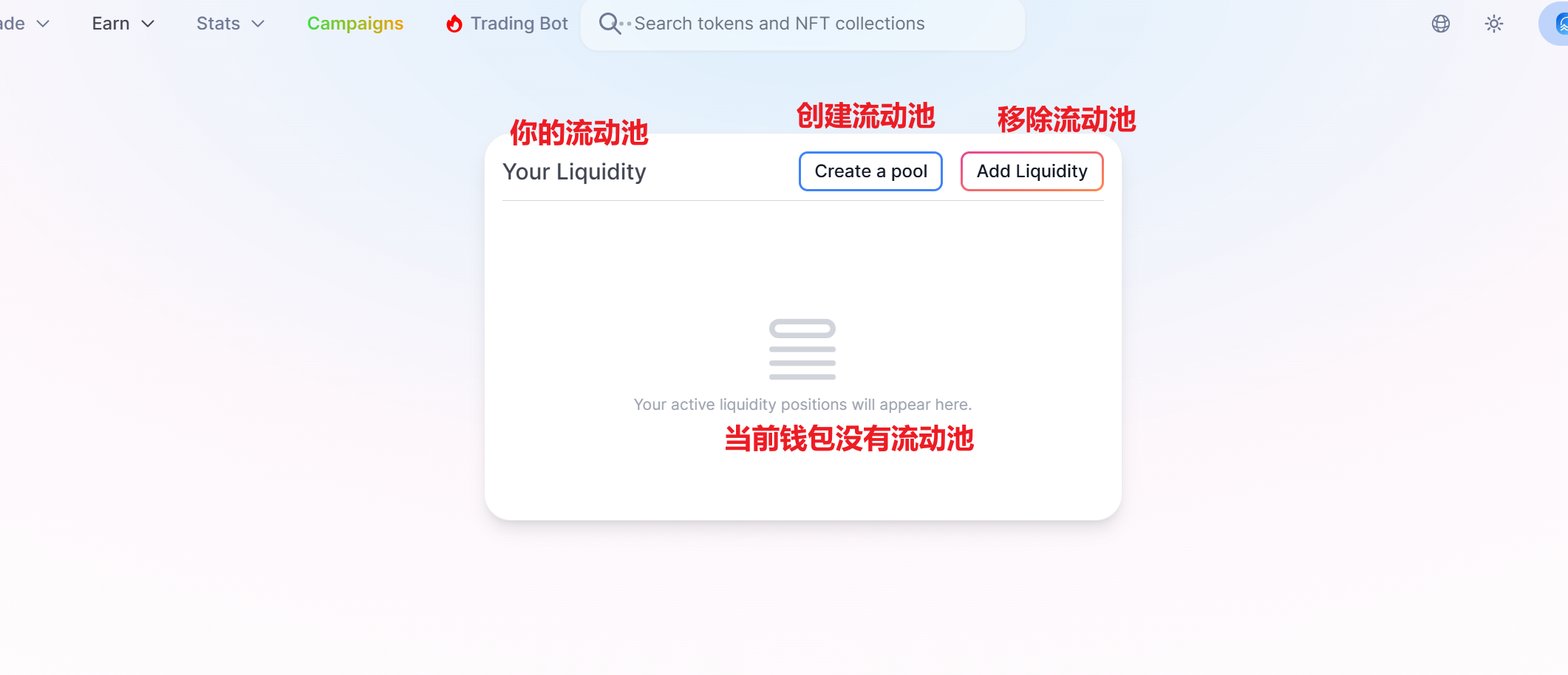 之后会进入到流动性管理页面,在这个页面你可以看到自己的流动性情况
