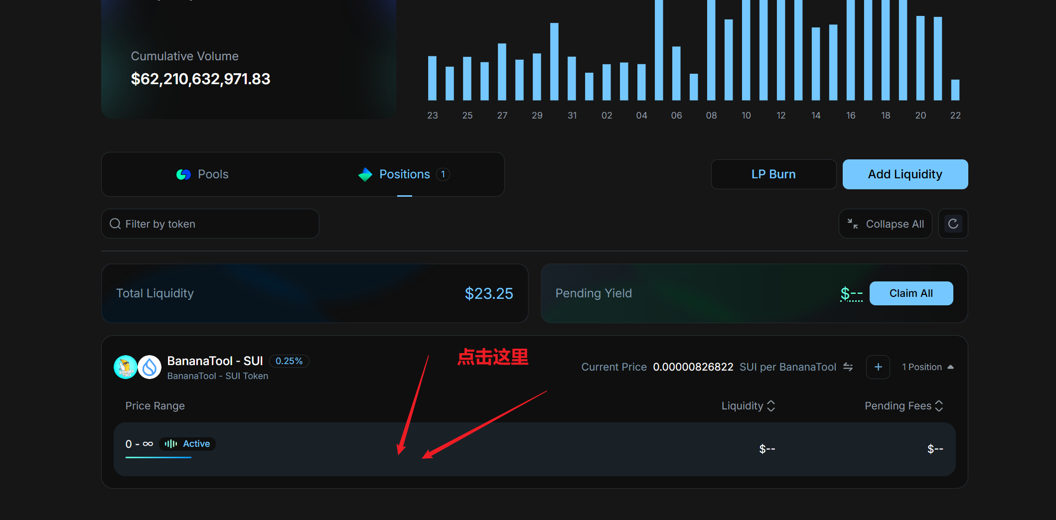 首先我们要做的是找到自己的流动性,在Cetus的流动性管理页面,点击我的仓位,找到自己的流动性:https://app.cetus.zone/pools?tab=positions