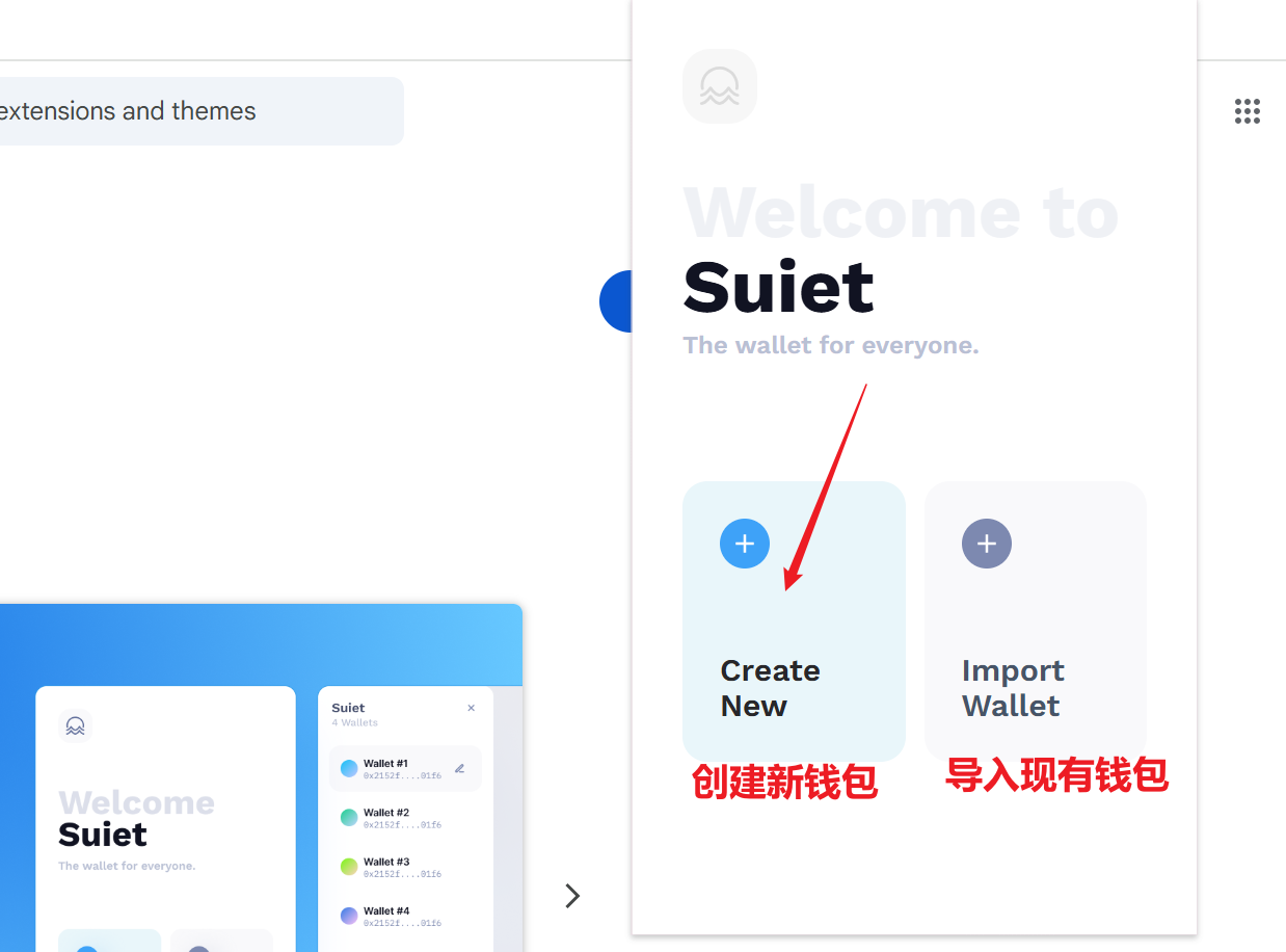 通过这个页面我们大致就可以了解Suiet钱包的基本属性。如果你要想创建新的钱包,或者再导入已有钱包,应该怎么办呢?
