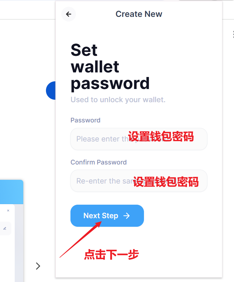 当我们点击Create New的时候,会弹出一个密码配置的页面,我们需要填入密码