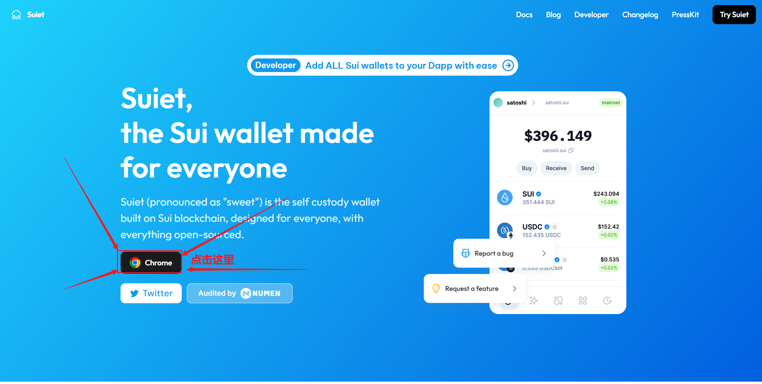 首先,我们先找到Suiet的官网:https://suiet.app/ ,在首页那里点击谷歌浏览器的图标