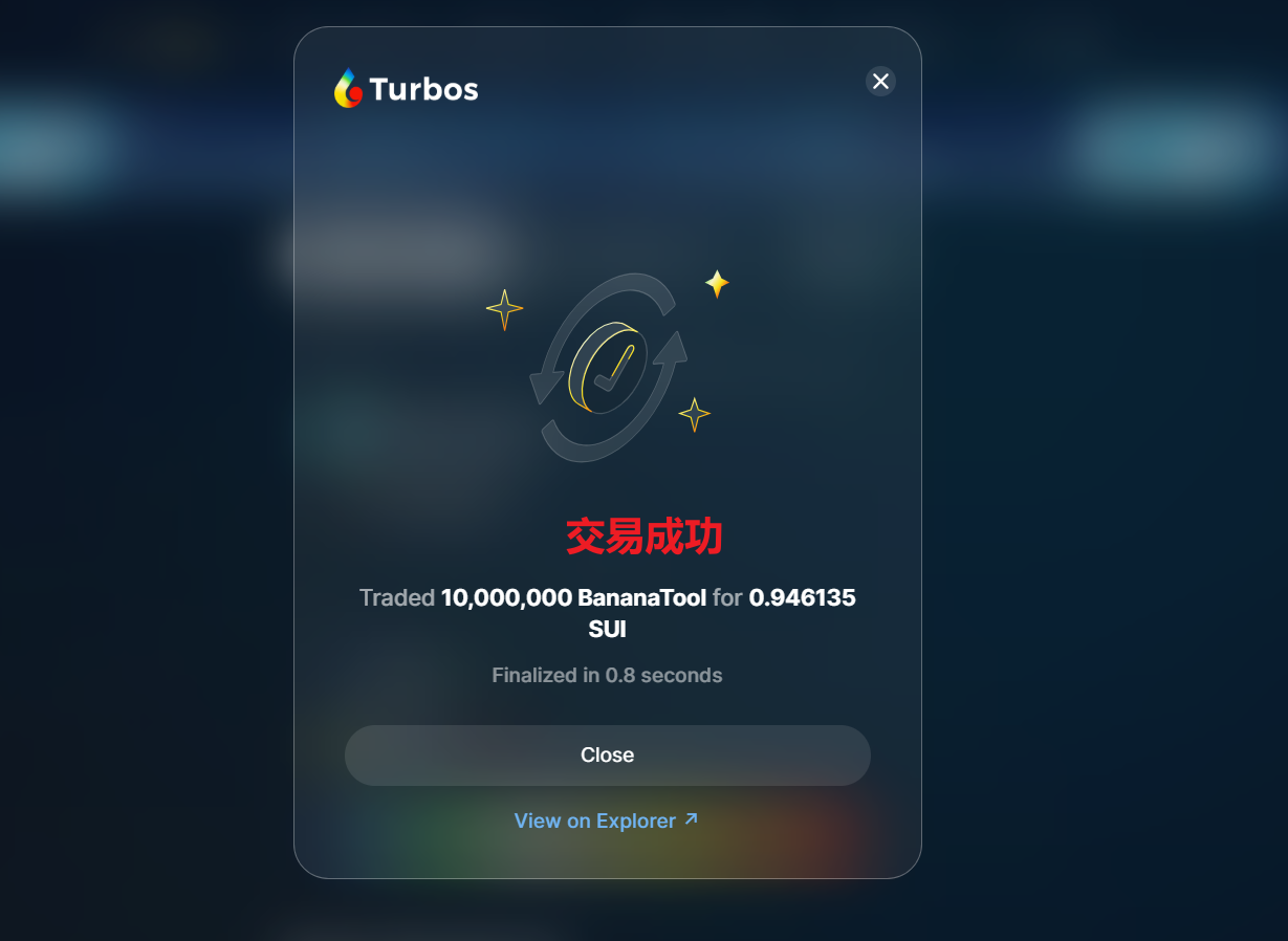 池子创建成功后,就可以交易了。我们进入到Trurbos的官网首页:https://app.turbos.finance/ ,选择卖出BananaTool代币100万个
