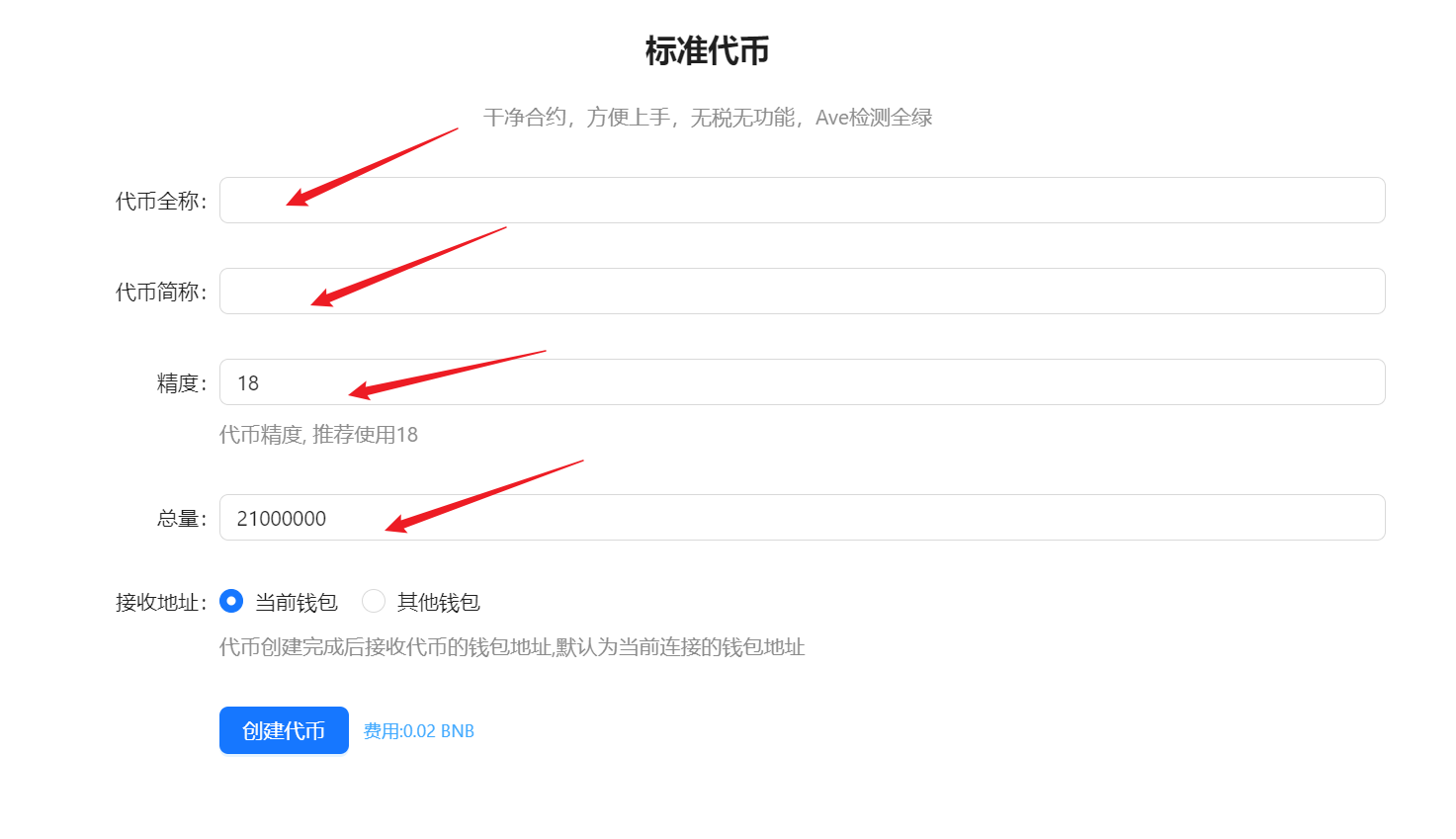 3、填写代币参数