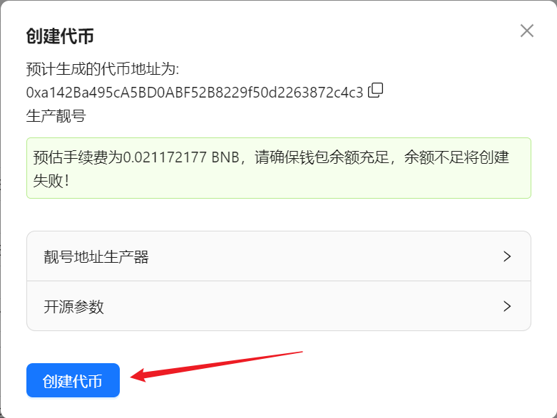 - 代币创建完成后,默认是开源的。如果没有开源,请提前准备好复制的源码以及构造参数,参考开源教程:代币开源