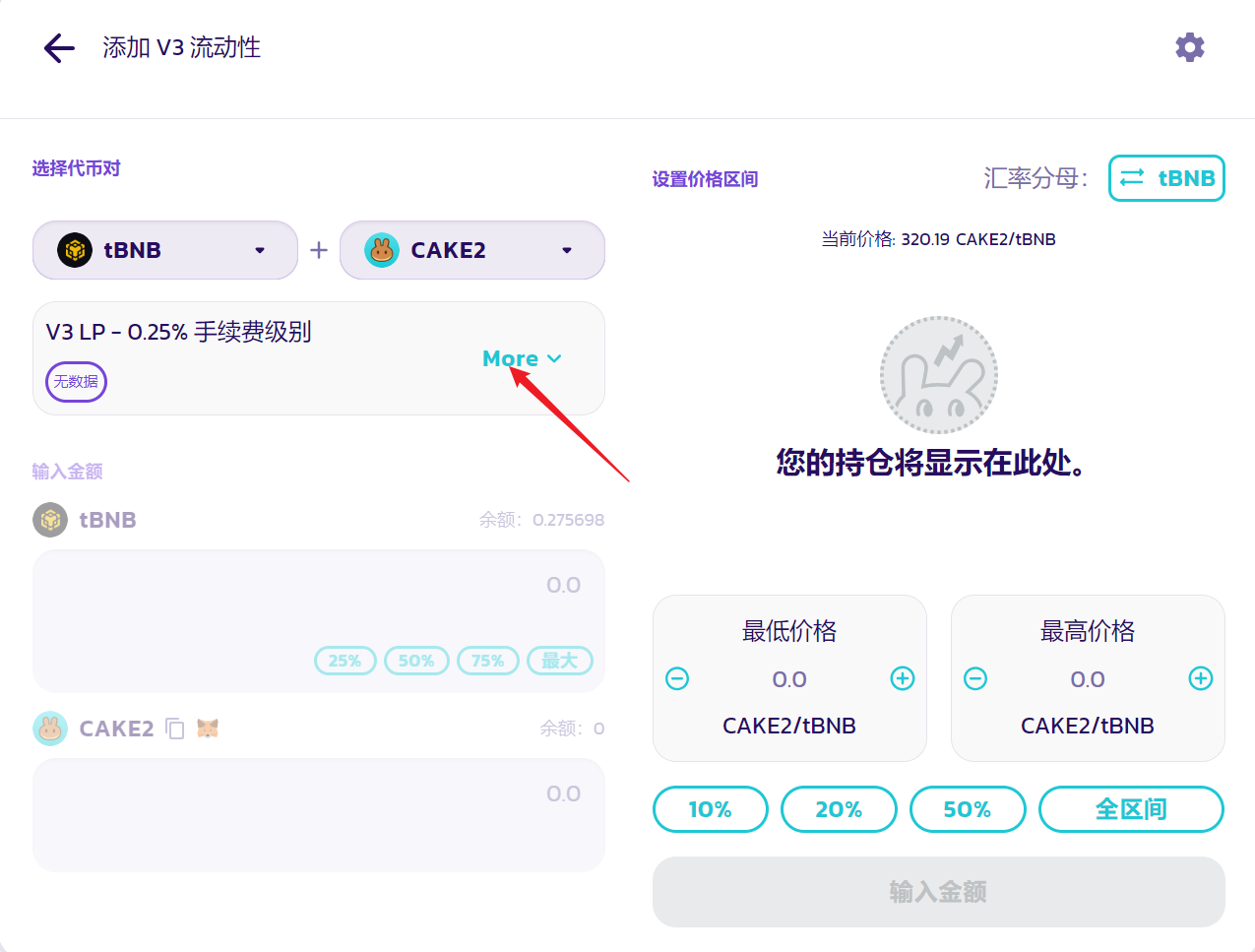 打开之后,点击More,点击添加V2流动性
