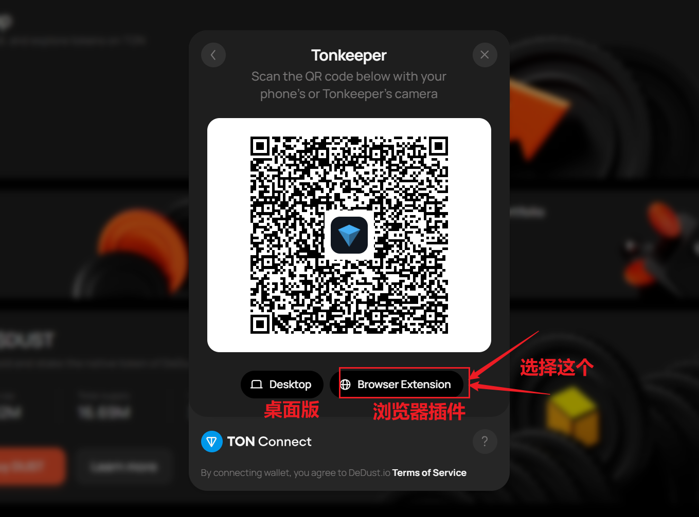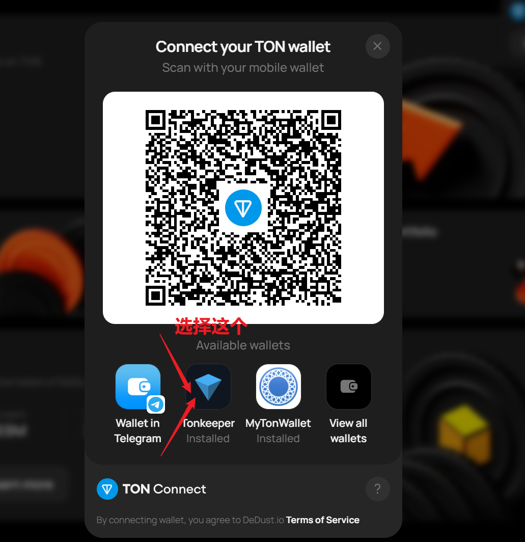 此时会弹出一列钱包让你选择,如果你安装了Tonkeeper,就选择这个(Tonkeeper安装教程)。如果你安装了OpenMask,就选择OpenMask。一般来说,我们会推荐大家使用Tonkeeper