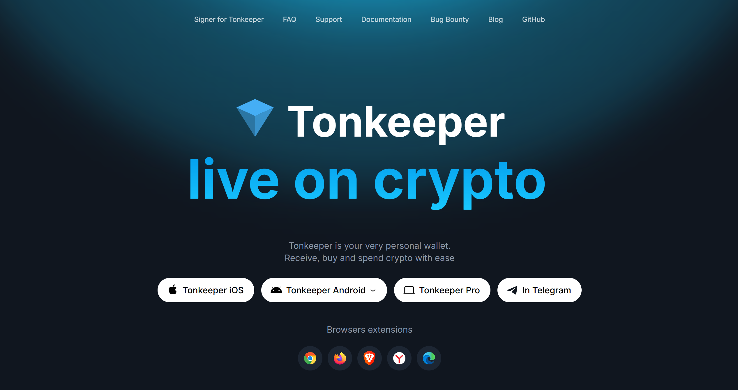 Tonkeeper 是 TON链上的最佳加密钱包之一。这种非托管加密货币钱包对于初学者和高级用户来说都是一个不错的选择,其简洁、简化的用户界面提供了多种功能,包括内置交易所、质押等。