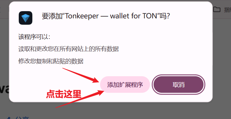 之后会弹出一个提醒说让你添加扩展程序,点击它等待几秒钟,即可添加完毕