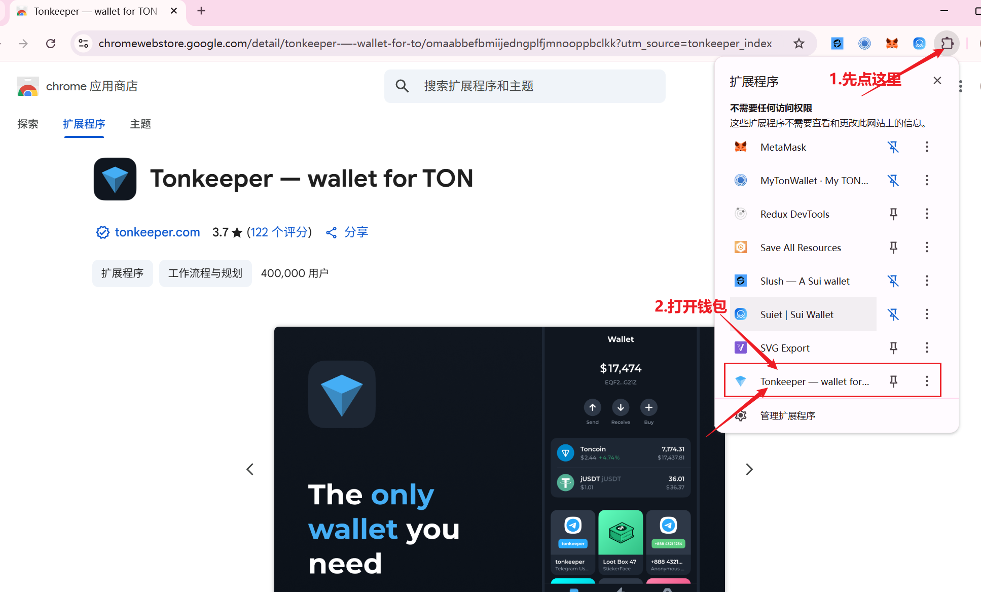 如果你觉得Tonkeeper钱包不太方便的话,还可以选择其他钱包插件