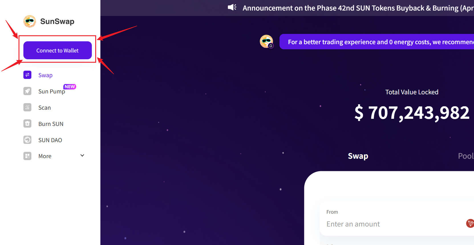 - 打开官网:https://sunswap.com/
