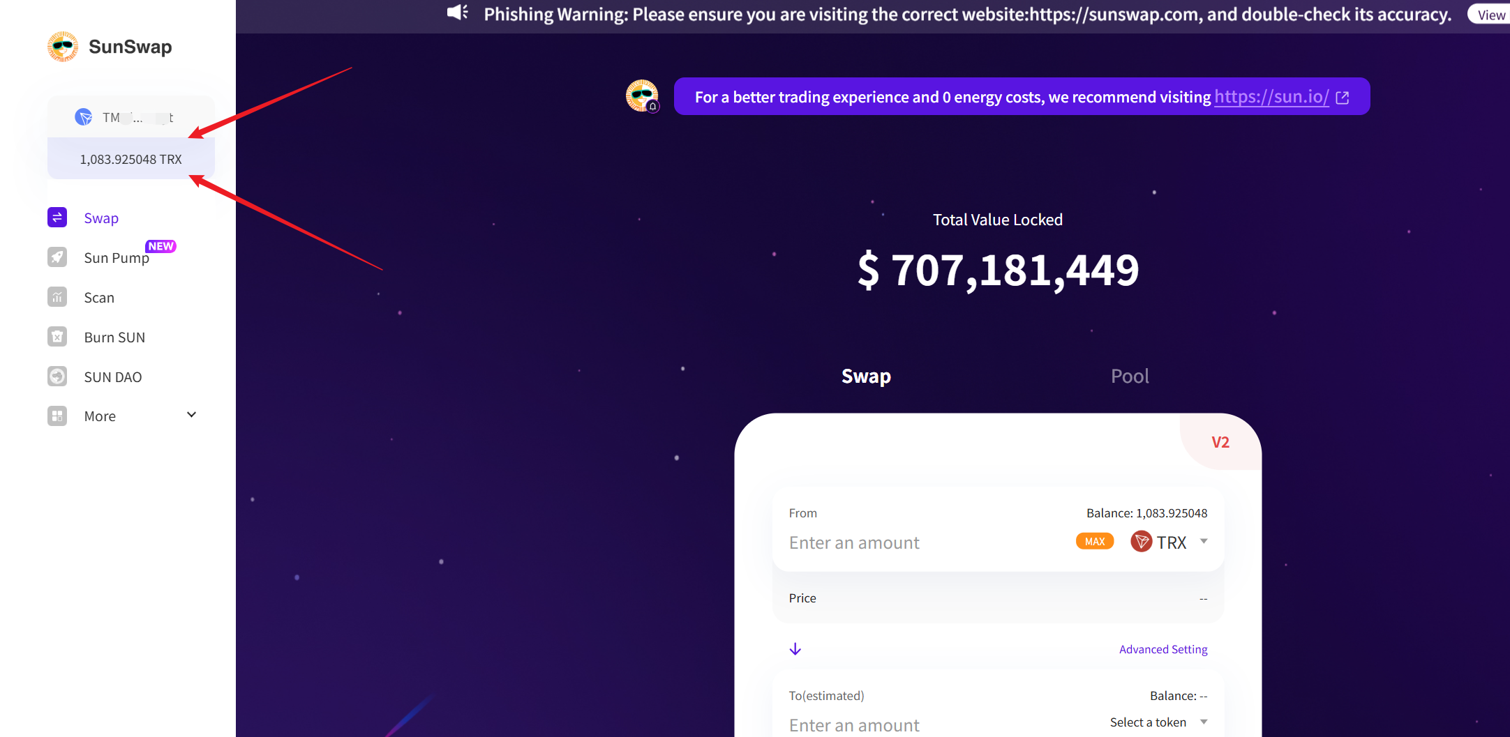 {% hint style="info" %} SunSwap 官方网站:https://sunswap.com/ {% endhint %}