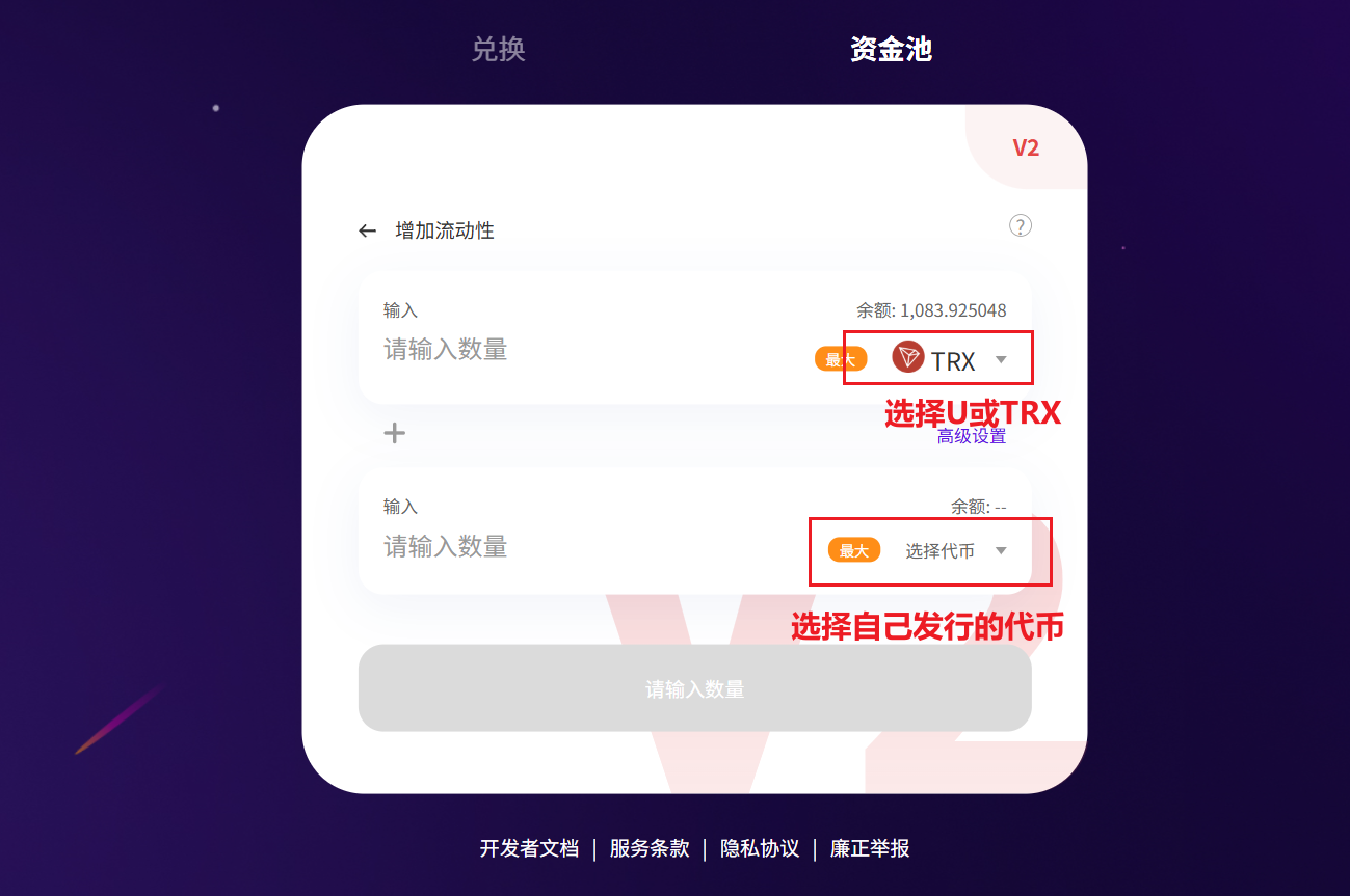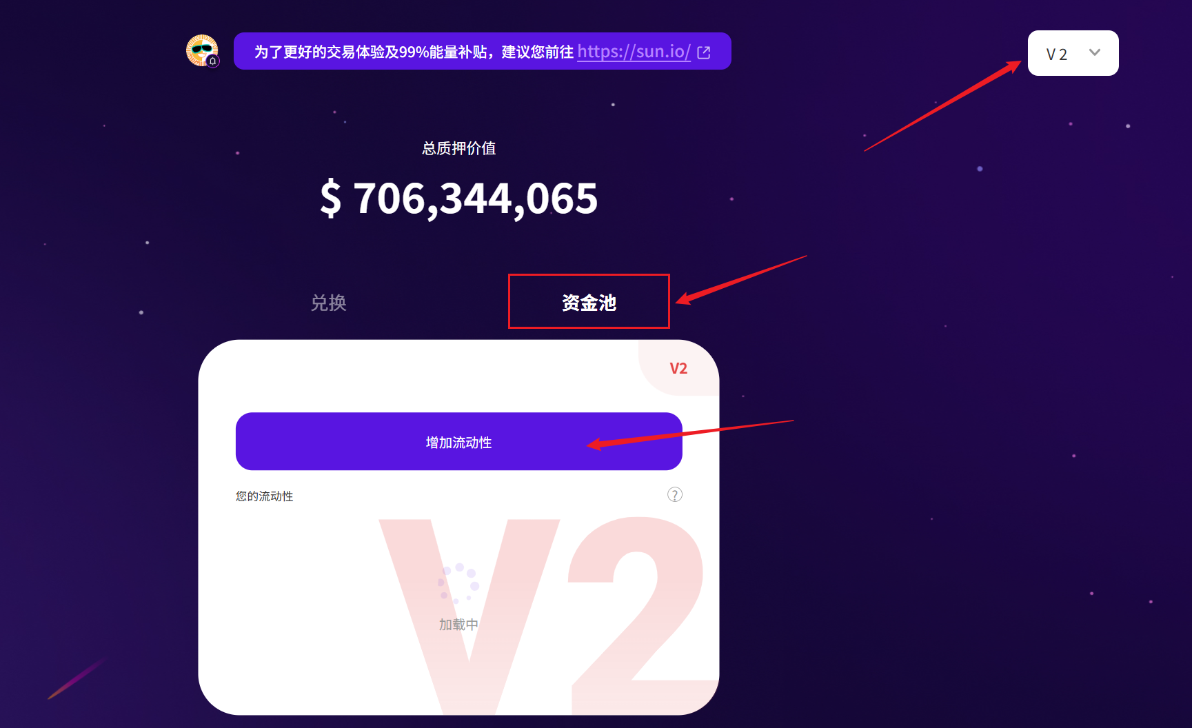 在添加流动性之前,请注意 SunSwap 存在不同版本的资金池。