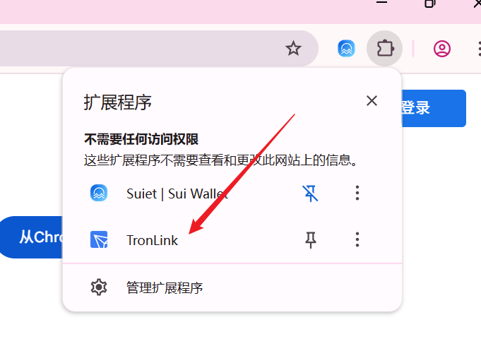 等待十几秒钟后,钱包插件就会安装成功。然后我们在谷歌浏览器的右上角,就能找到安装好的TronLink
